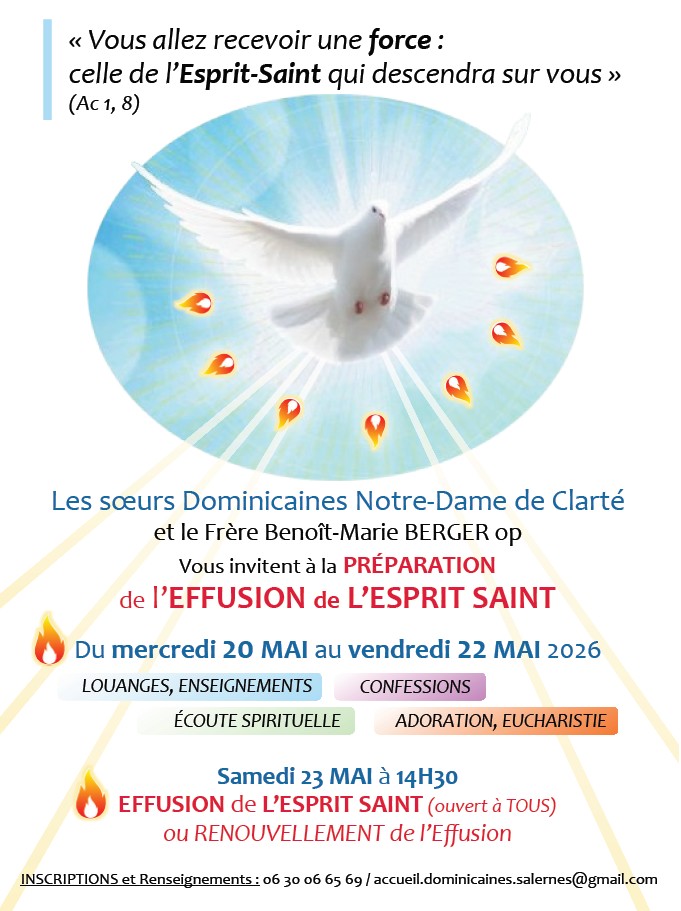 *Du mardi 20 mai au samedi 23 mai (Effusion de l’Esprit-Saint)