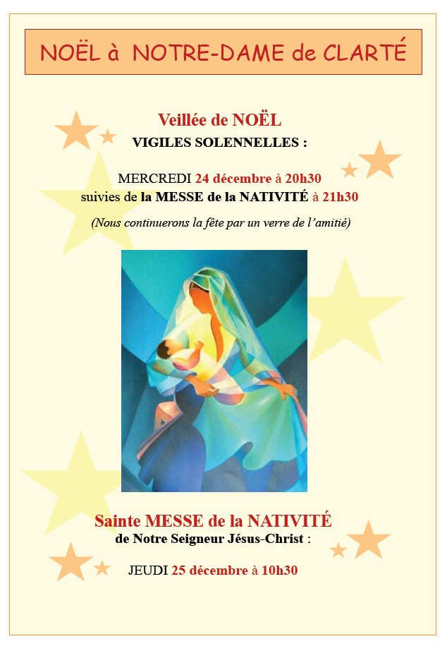 *Jeudi 25 déc. : MESSE de la Nativité à 10h30